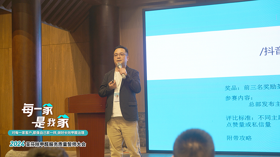 荃芬總部王策從需求的角度分析:消費降級帶來的主要影響是,消費會從較高的需求層次向“生命健康、安全”的基礎需求坍縮,即消費者會減少在奢侈品等精神享受層面的消費,最大化保留在安全健康層面的消費,而除甲醛,正是屬于安全健康的需求——這也是近兩年建材行業從業者大批跨界進入除甲醛行業的原因。同時用數據論證了市場空間之大,“我們就像一條海魚,根本無需擔心海水在夏天蒸發得太多”。2024年起,各地荃芬應將重點放在“提升市場占有率”、“積累口碑打造護城河”,接著為大家系統講解了2024年度的整體營銷設計。