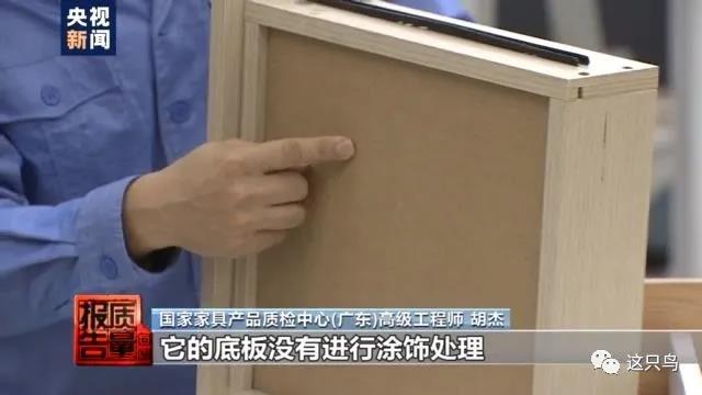 國家家具產(chǎn)品質(zhì)量監(jiān)督檢驗(yàn)中心(廣東)高級工程師 胡杰:這個抽屜的側(cè)板和底板沒有進(jìn)行封邊的處理,這個樣品是不符合標(biāo)準(zhǔn)要求的。我們再來看一下最后一個,這些地方都進(jìn)行了封邊的處理,但是在一些隱蔽的地方,它的底板沒有進(jìn)行涂飾處理,這個也是不符合標(biāo)準(zhǔn)要求的。